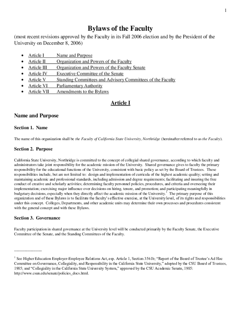 1Bylaws of the Faculty (most recent revisions approved by the Faculty in its Fall 2006 election and by the President of the University on December 8, 2006) Article I Article II Article III Article