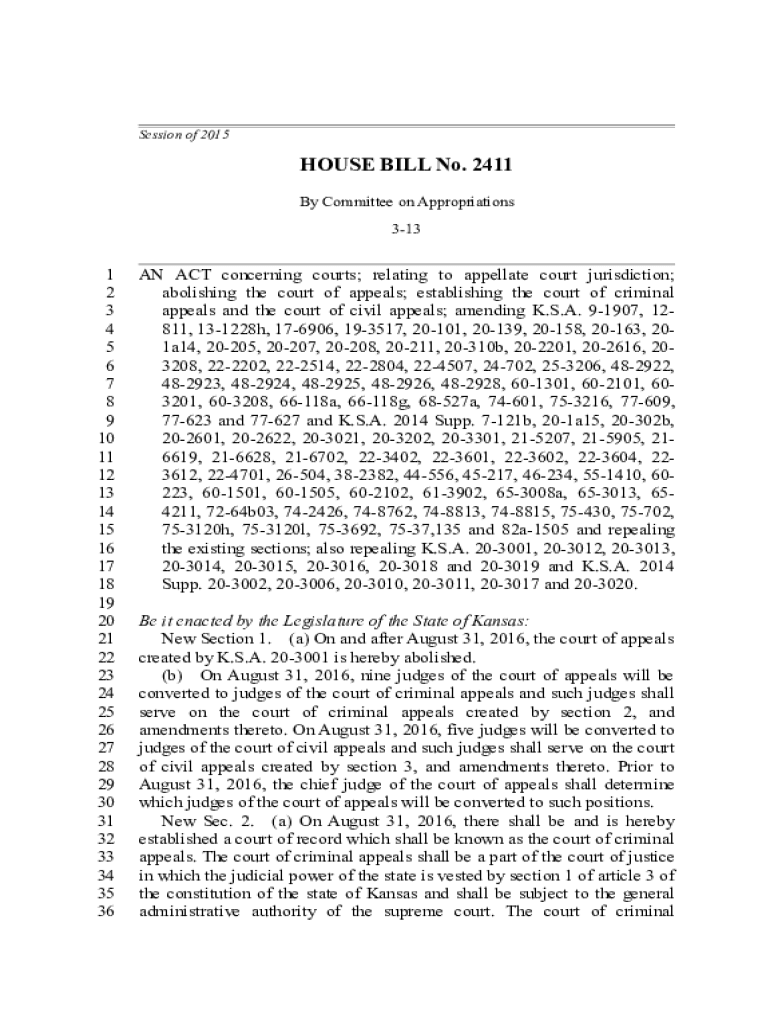 Session of 2015HOUSE BILL No. 2411 By Committee on Appropriations 3131 2 3 4 5 6 7 8 9 10 11 12 13 14 15 16 17 18 19 20 21 22 23 24 25 26 27 28 29 30 31 32 33 34 35 36AN ACT concerning courts; relating