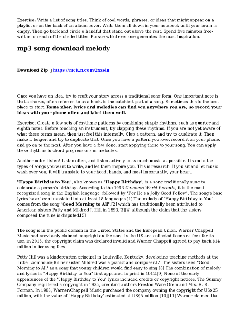 Exercise: Write a list of song titles. Think of cool words, phrases, or ideas that might appear on a