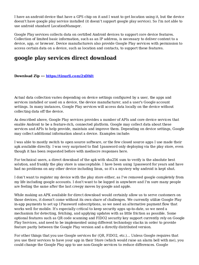 Developers and companies that publish applications on the Google Play Store are required to file Google Play Services Direct.