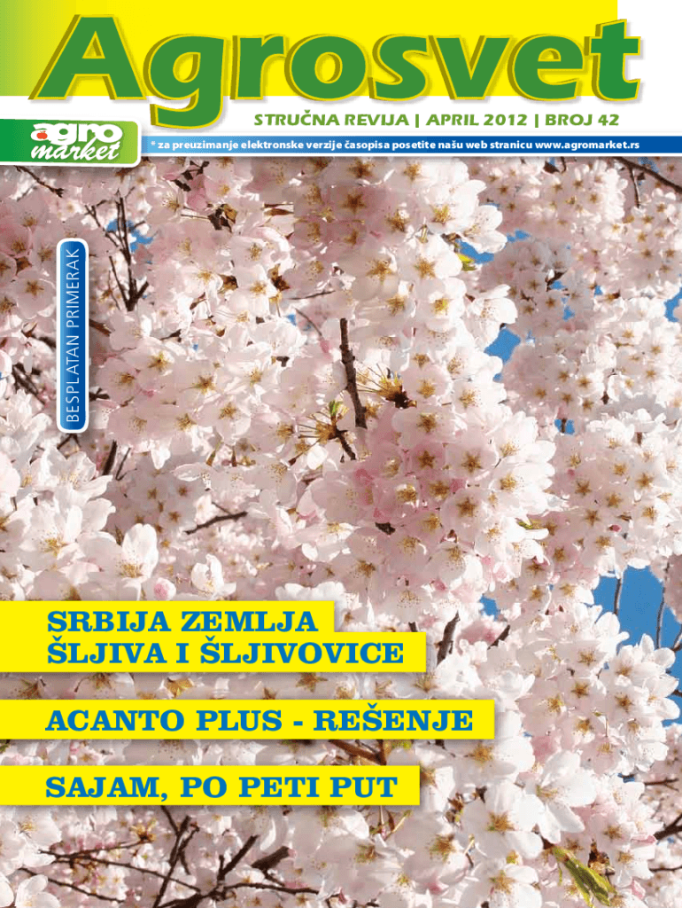 STRUCNA REVIJA | APRIL 2012 | BROJ 42BESPL ATAN PRIMERAK* za preuzimanje elektronske verzije asopisa posetite nau web stranicu www.agromarket.rsSRBIJA ZEMLJA [LJIVA I [LJIVOVICE ACANTO PLUS RE[ENJE