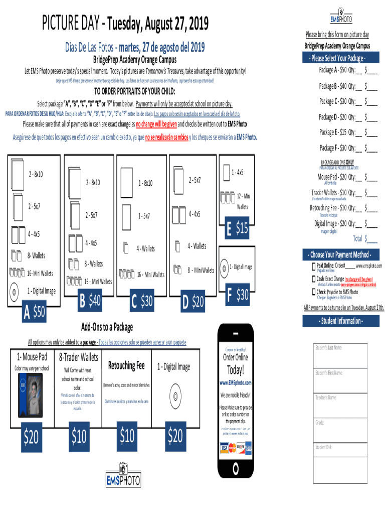 PICTURE DAY Tuesday, August 27, 2019Please bring this form on picture day
