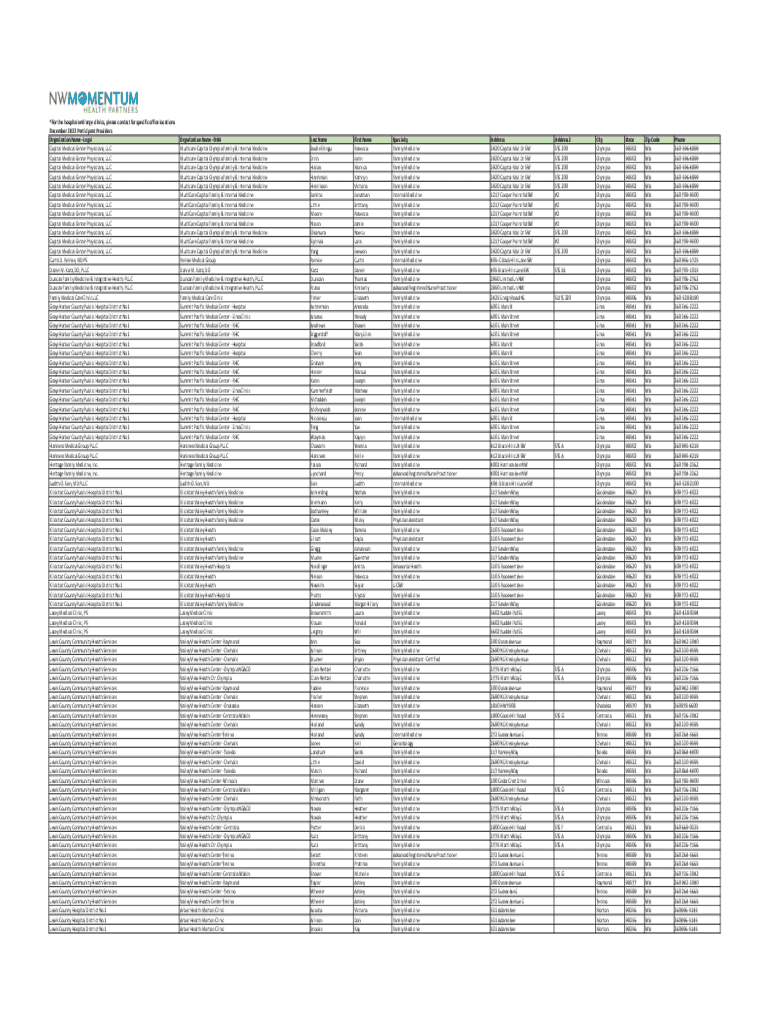 *For the hospital and large clinics, please contact for specific office locations December 2022 Participant Providers Organization Name Legal Capital Medical Center Physicians, LLC Capital Medical