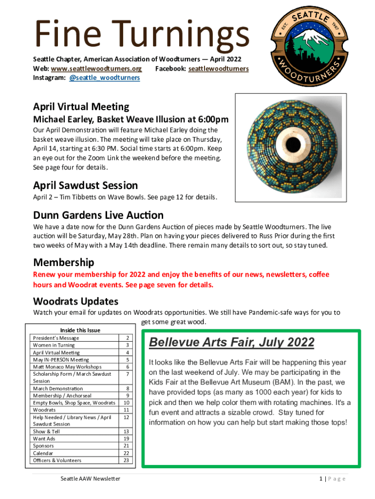 Instagram: Seattle_woodturnersApril Virtual Meeting