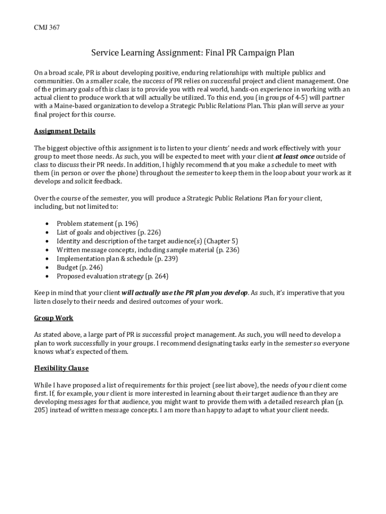 Get the free Service Learning Assignment: Final PR Campaign Plan