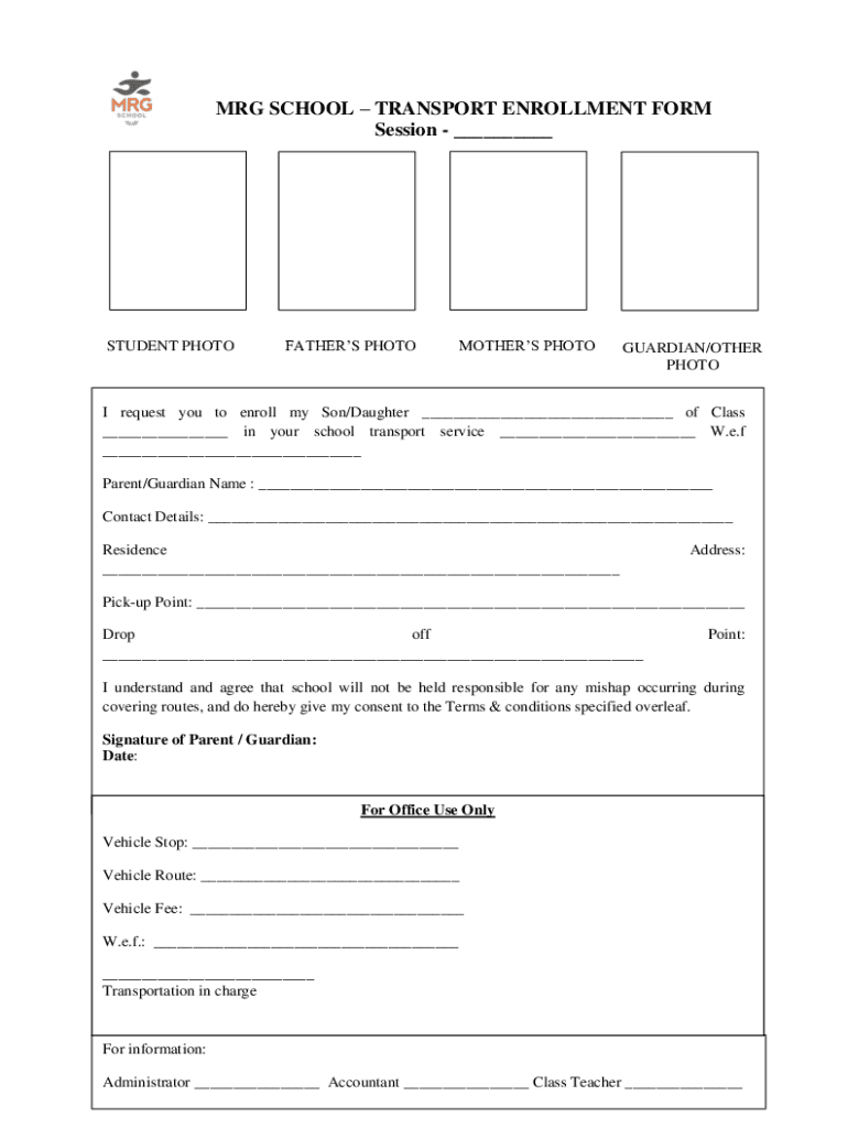 MRG SCHOOL TRANSPORT ENROLLMENT FORM