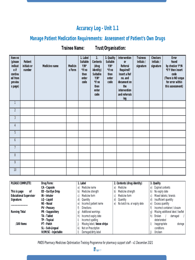 What is PWDS Pharmacy Medicines Optimisation Training Programme. Portfolio templates Form?