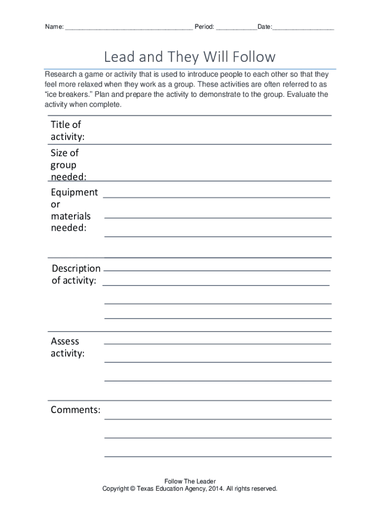 Name: ___ Period: ___Date:___Lead, and They Will Follow
