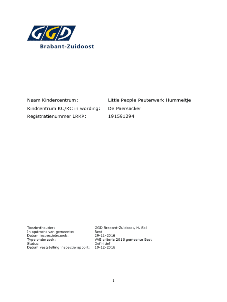 Nam Kindercentrum:Little People Peuterwerk HummeltjeKindcentrum KC/KC in wording:De PaersackerRegistratienummer LRIP:191591294Toezichthouder: