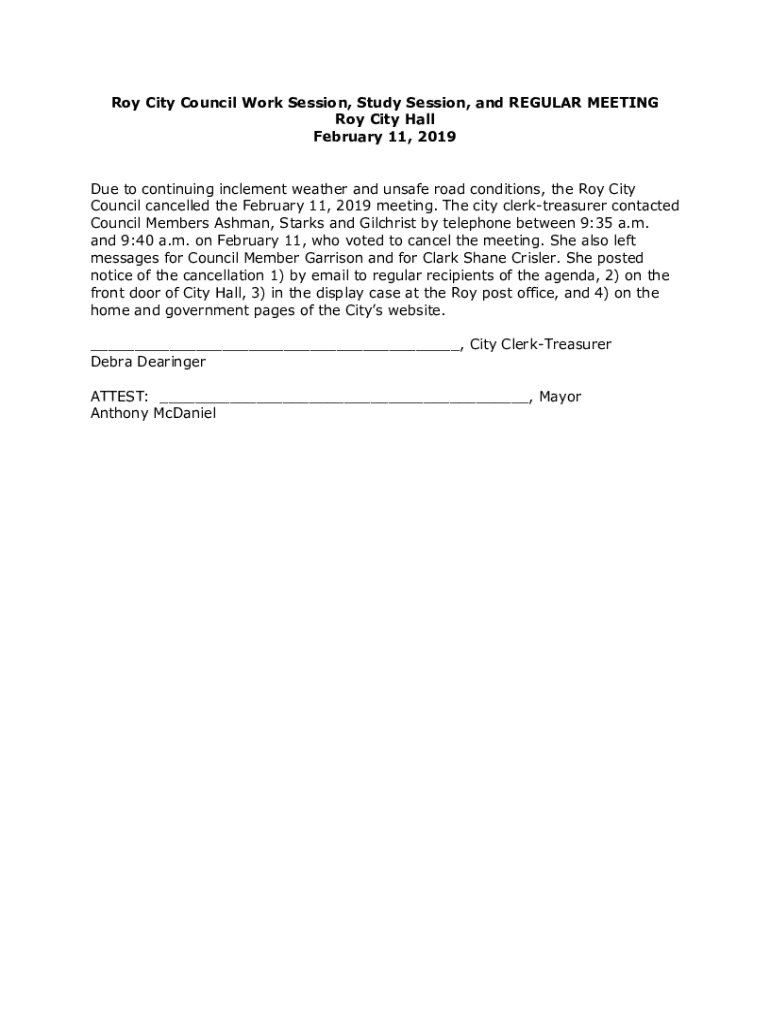 Get the free Due to continuing inclement weather and unsafe road conditions, the Roy City