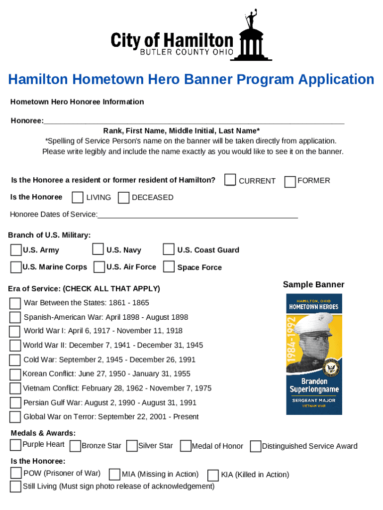 Hamilton Hometown Hero Banner Program Application