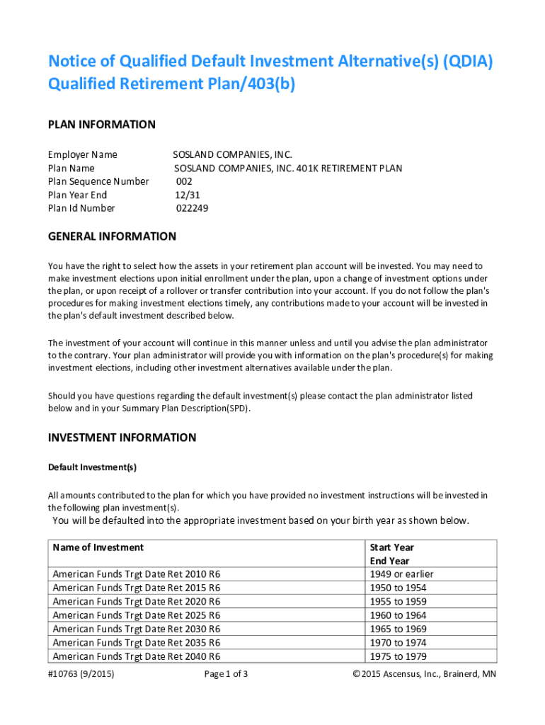Notice of Qualified Default Investment Alternative(s) (QIA)