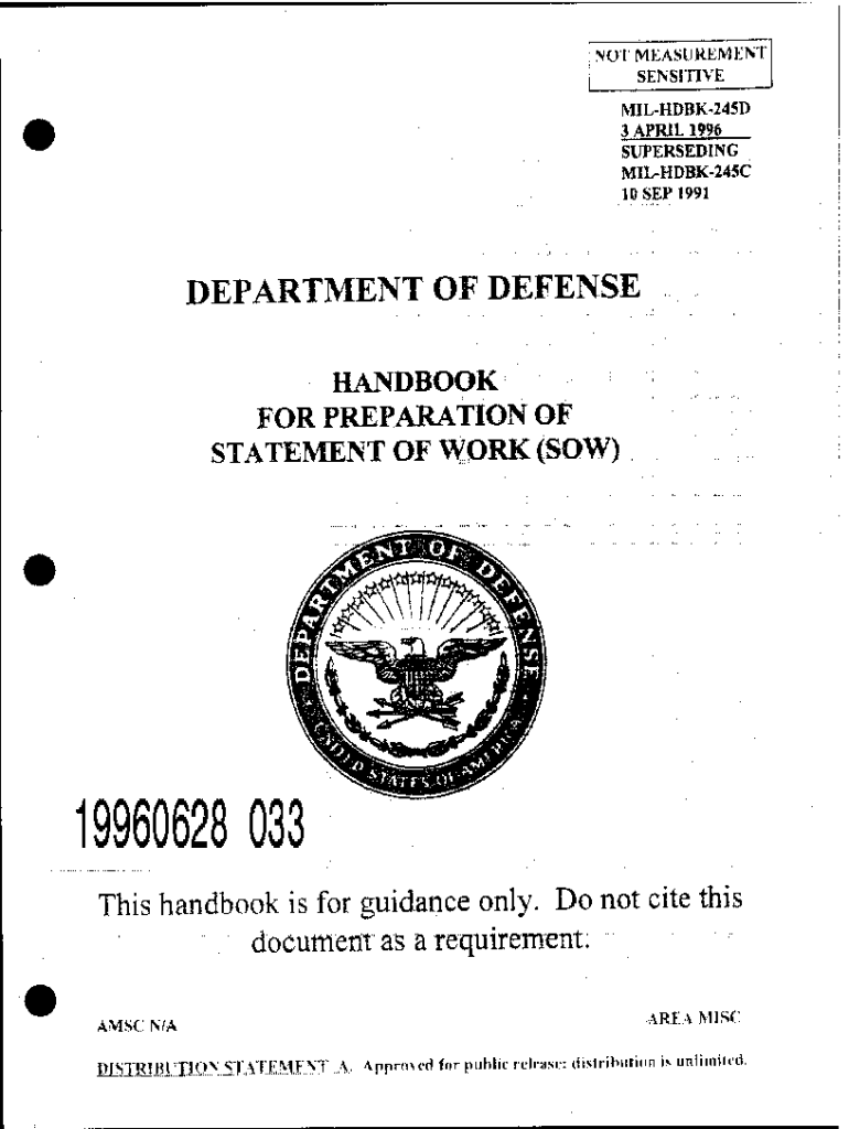 Get the free Department of Defense Handbook for Preparation of Statement of Work (SOW).