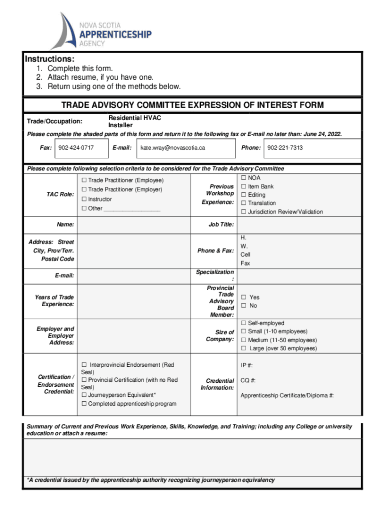 3. Return using one of the methods below. TRADE ADVISORY COMMITTEE EXPRESSION OF INTEREST FORM