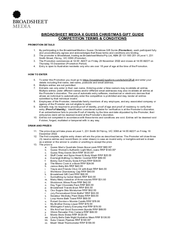 Get the free Broadsheet Media Promotion Ts & CsGame of ChanceGuess Christmas Gift Guide.docx