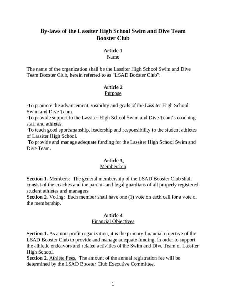 How should you fill out the NORTH COBB SWIM DIVE BOOSTER CLUB BY-LAWS template