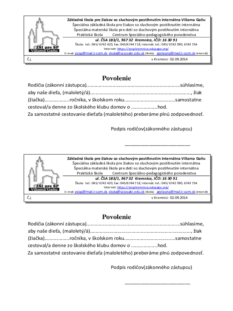 Get the free Zkladn kola pre iakov so sluchovm postihnutm interntna Viliama Gau