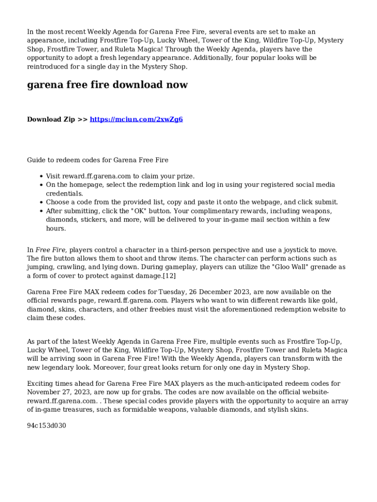 Fill out your garena fire redeem codes online with pdfFiller!