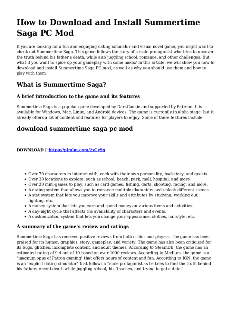 How to Download and Install Summertime Saga PC Mod If you are looking for a fun and engaging dating simulator and visual novel game, you might want to check out Summertime Saga. This game follows