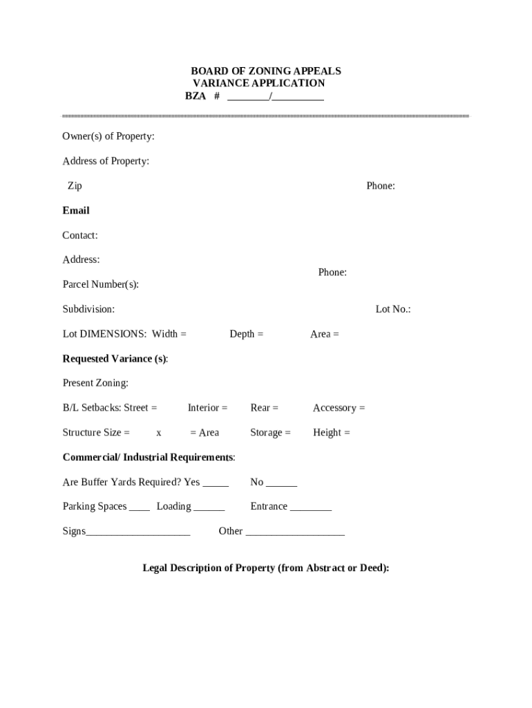 What is sBoard of Zoning Appeals - Variance Application Form?