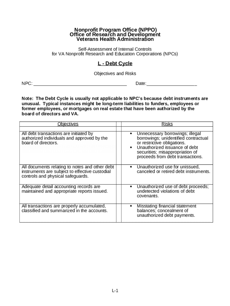 Template Self-Assessment of Internal Controls for VA Nonprofit ... instructions