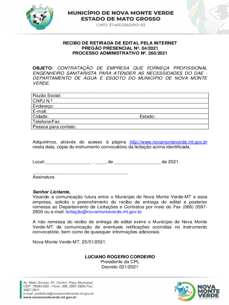 PROCESS ADMINISTRATIVE N. 260/2021OBJETO: CONTRA TAO DE EMPRESS QUE CORNEA PROFESSIONAL
