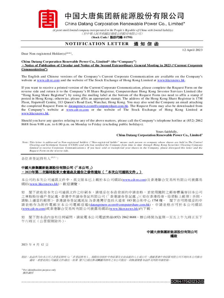 (Stock Code / : 01798)N O T I F I C AT I O N L E T T E R