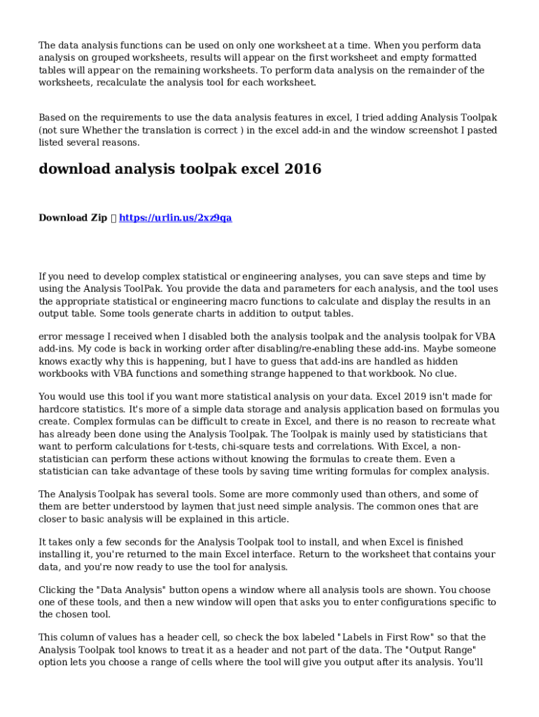 The data analysis functions can be used on only one worksheet at a time. When you perform data