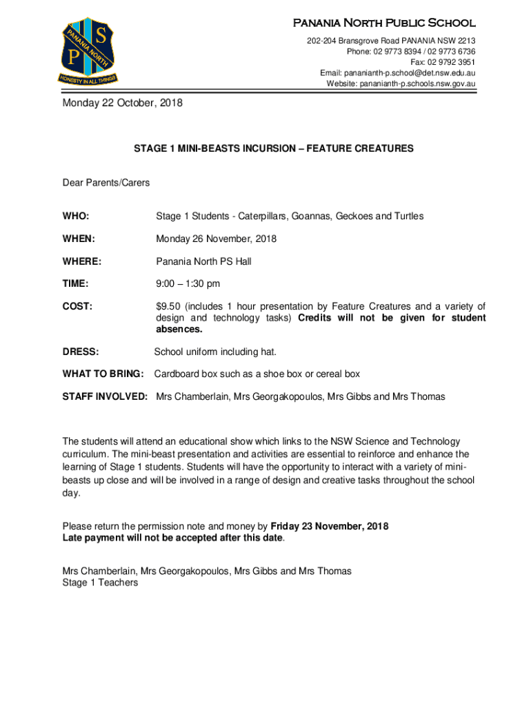 Get the free Stage 1 Mini-Beast Incursion - Panania North Public School