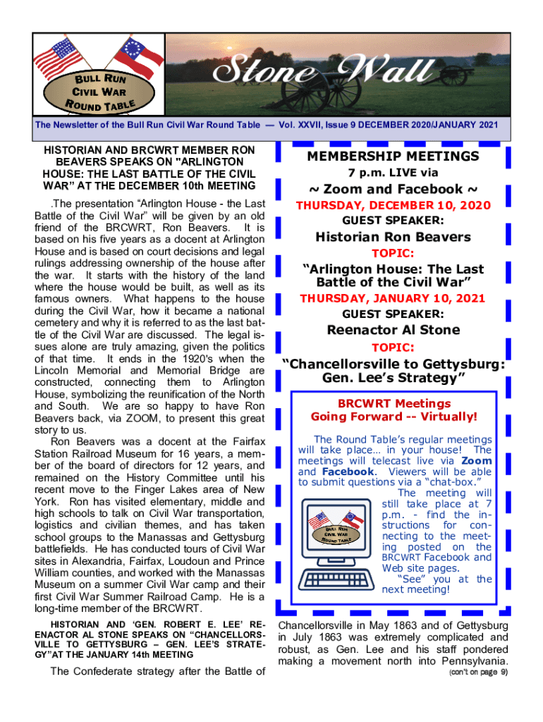 BRC WRT Vol. Page 1XXVII, Issue 9 DECEMBER 2020/JANUARY 2021The Newsletter of the Bull Run Civil War Round Table Vol. XXVII, Issue 9 DECEMBER 2020/JANUARY 2021HISTORIAN AND BRC WRT MEMBER RON
