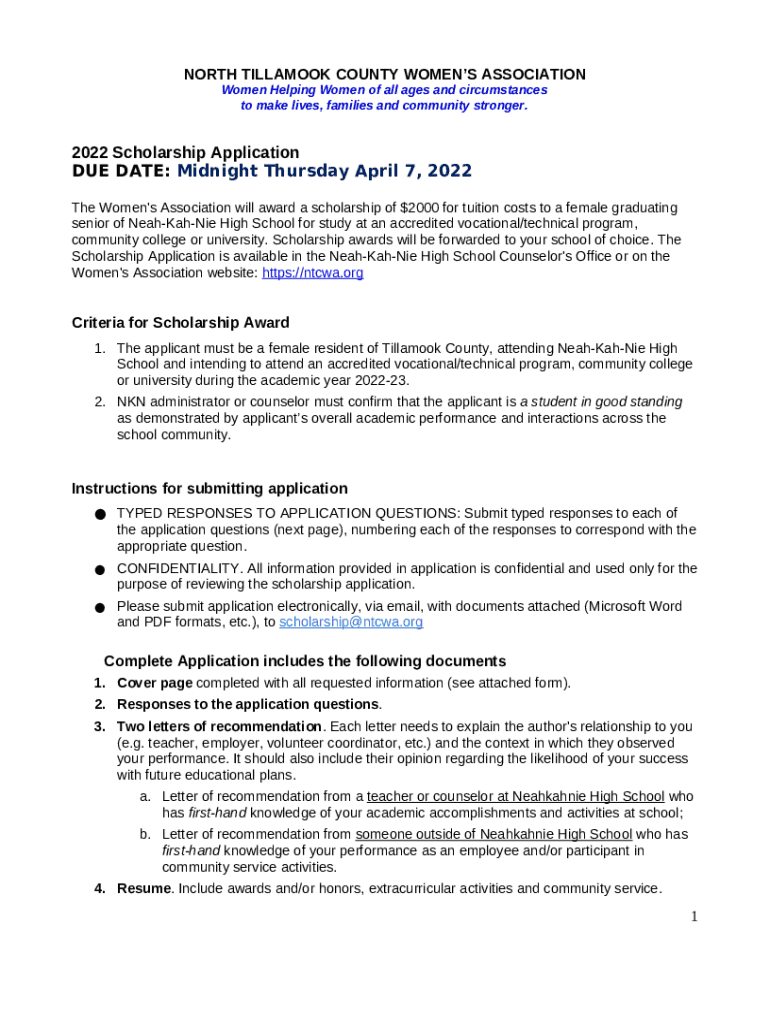 What is North Tillamook County Women's Association, Monthly ... Form?