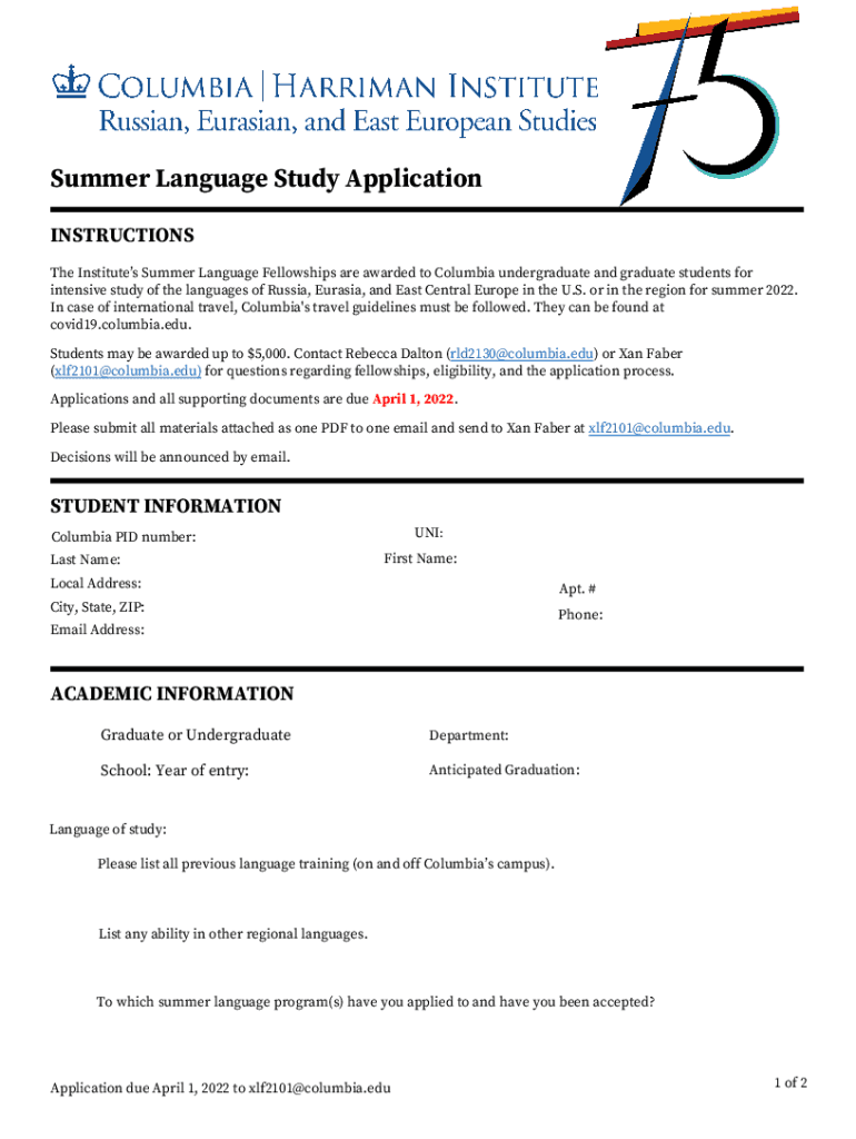 Summer Language Study Application INSTRUCTIONS The Institutes Summer Language Fellowships are awarded to Columbia undergraduate and graduate students for intensive study of the languages of Russia,