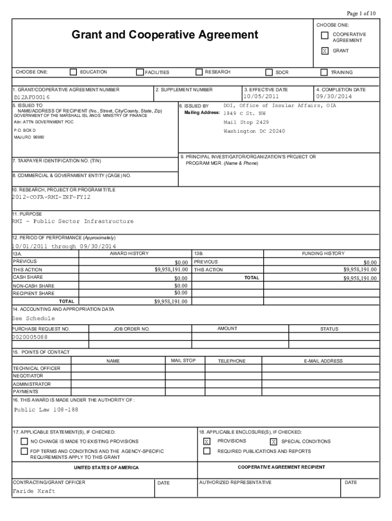 CHOOSE ONE:Grant and Cooperative AgreementCOOPERATIVE