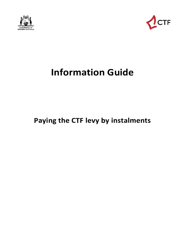 Information GuidePaying the CTF levy by instalmentsPaying the CTF levy by instalments Under Section 21A of the Building and Construction Industry Training Fund and Levy Collection Act 1990 (the Act),