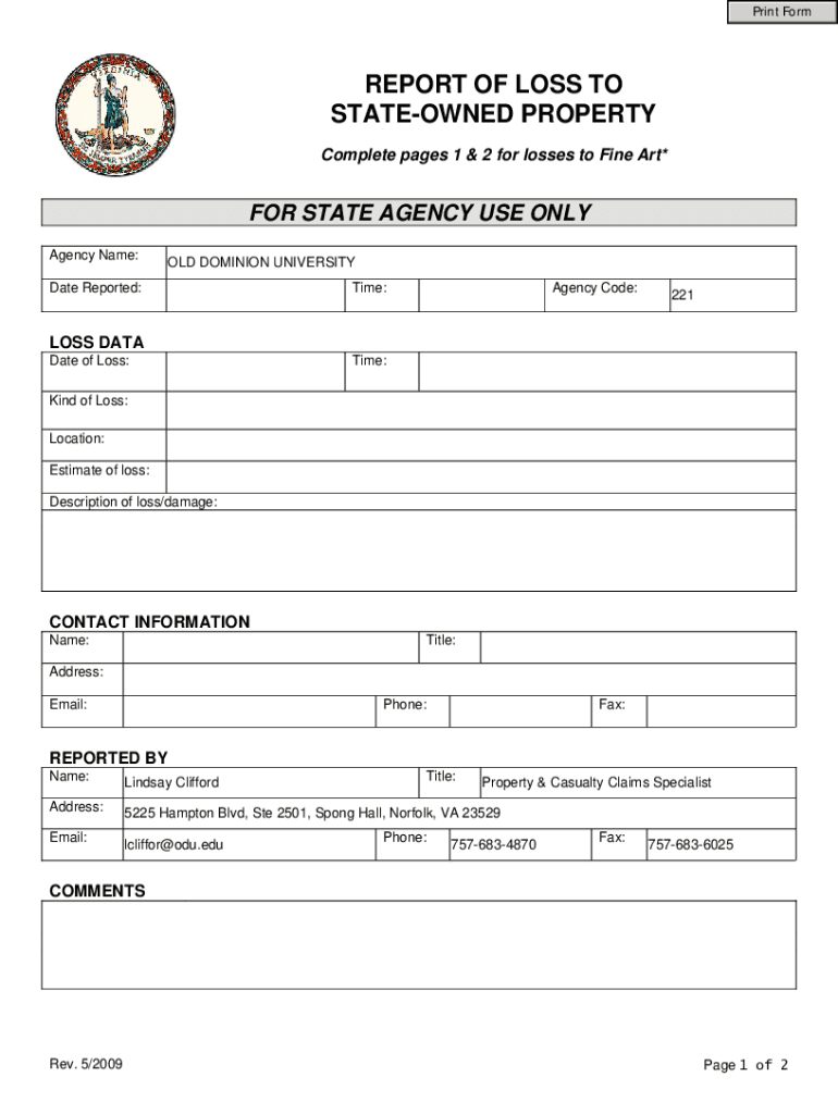 Get the free State Property Loss Form. State Property Loss Form