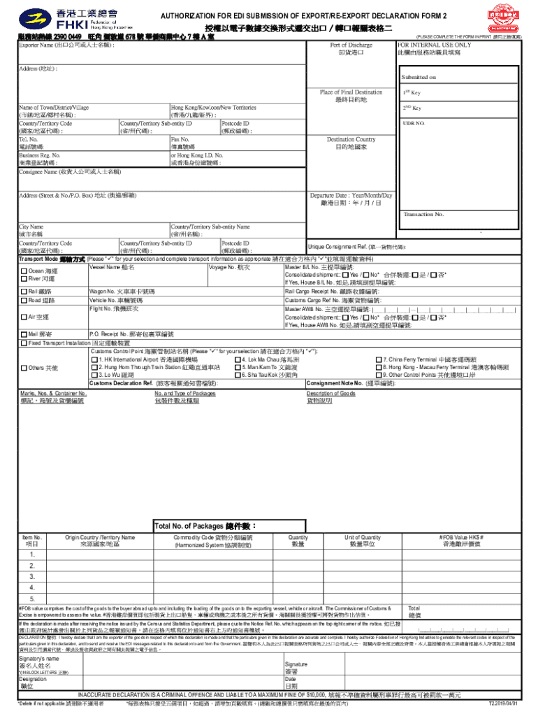 AUTHORIZATION FOR EDI SUBMISSION OF EXPORT/REEXPORT DECLARATION FORM 2