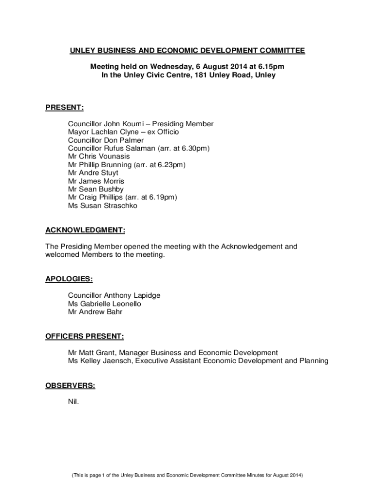 UNLAY BUSINESS AND ECONOMIC DEVELOPMENT COMMITTEE