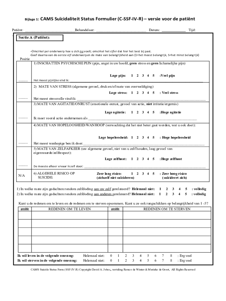 Pak de gratis Bijlage 1: CAMS Sucidaliteit Status Formulier (C-SSF-IV-R)