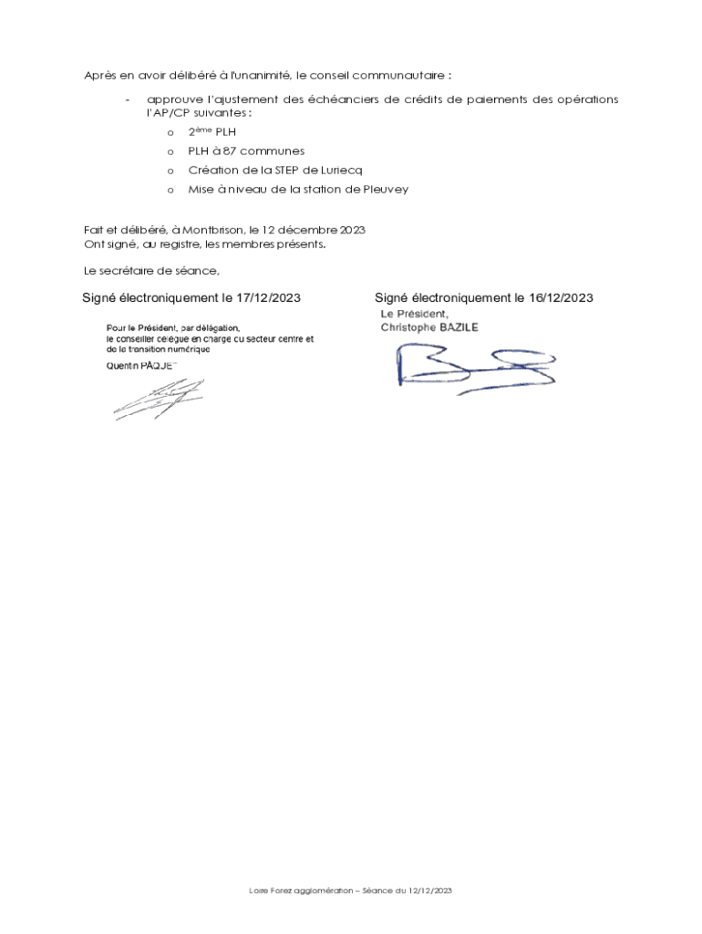 DEPARTEMENT DE LA LOIRE ARRONDISSEMENT DE MONTBRISONLOIRE FOREZ AGGLOMERATION ___ EXTRAIT DU REGISTRE DES DLIBRATIONS DU CONSEIL COMMUNAUTAIRE ___N 20231206Sance du mardi 12 dcembre 2023 OBJET : AJUSTEMENTS