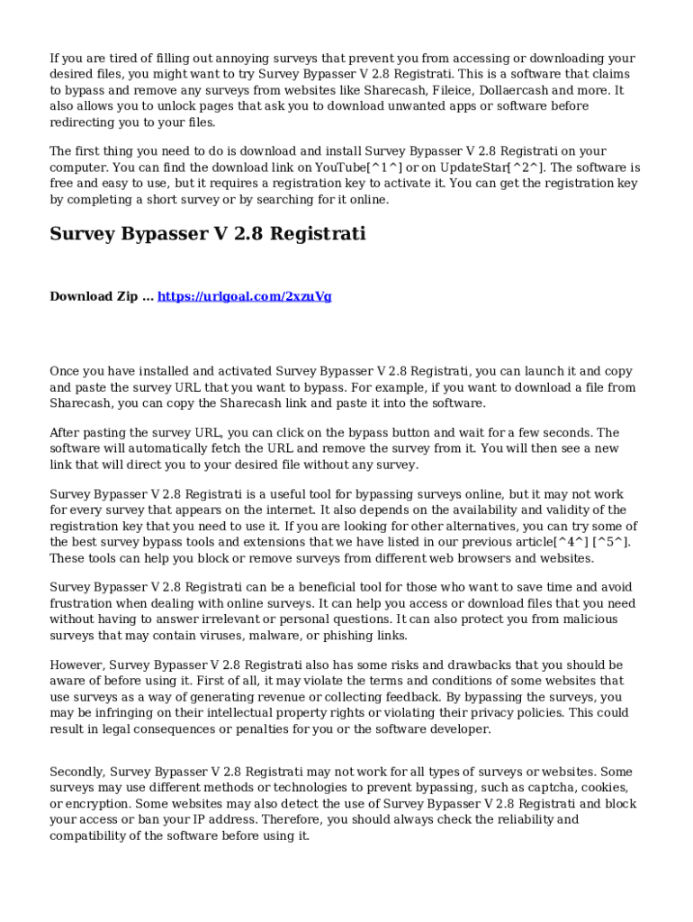desired files, you might want to try Survey Bypassed V 2.8 Registration. This is a software that