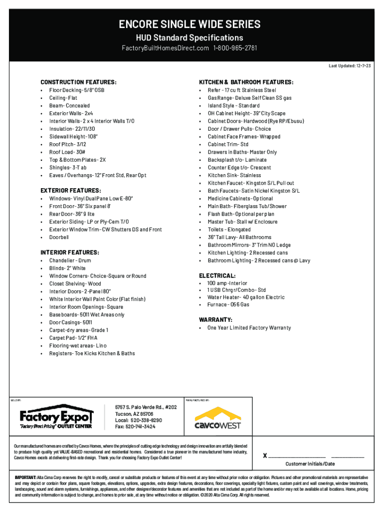 Encore Single Wides Series is not the form you're looking for?Search for another form here.