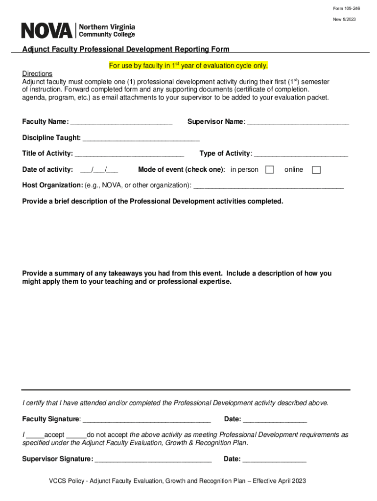 105-246-Adjunct Faculty Professional Development is not the form you're looking for?Search for another form here.