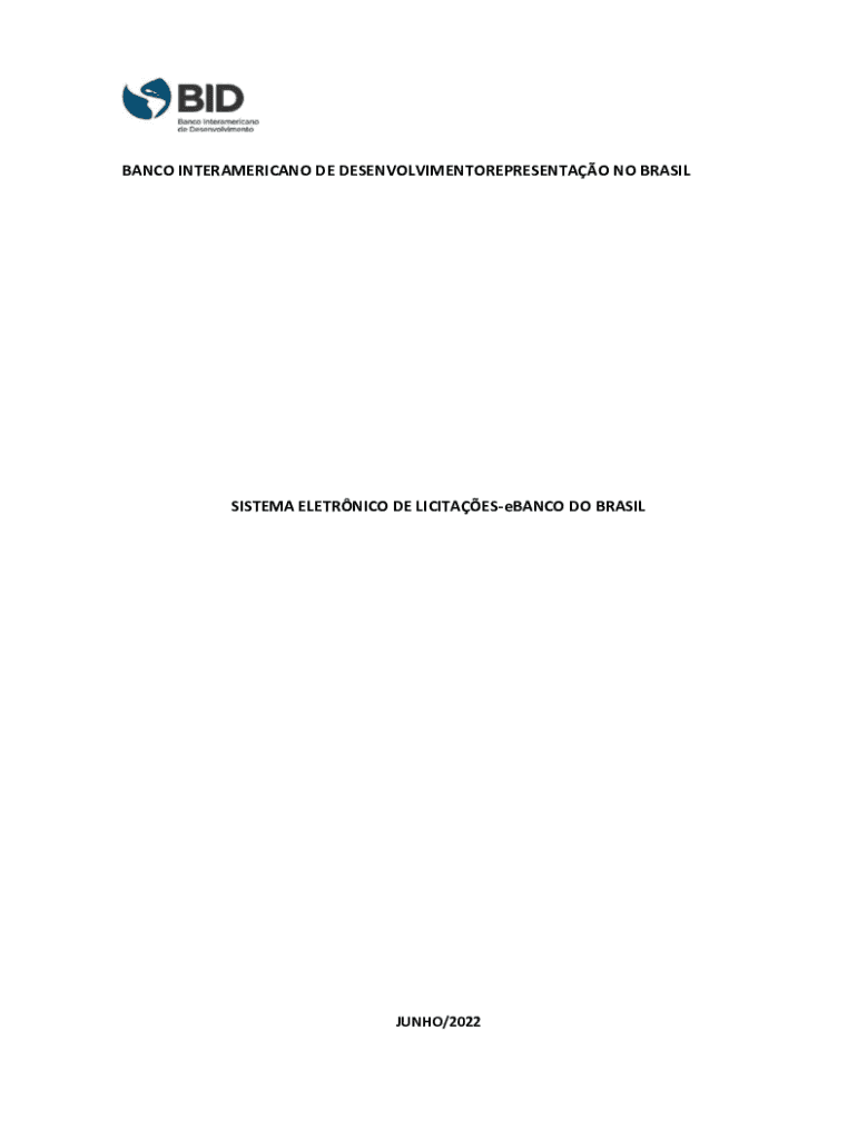 BANCO INTERAMERICANO DE DESENVOLVIMENTOREPRESENTAO NO BRASILSISTEMA ELETRNICO DE LICITAESeBANCO DO BRASILJUNHO/2022SECRETARIA DE CULTURA E TURISMO SECULT PROGRAMA NACIONAL DE DESENVOLVIMENTO DO TURISMO