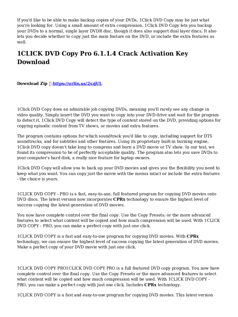If you\'d like to be able to make backup copies of your DVDs, 1Click DVD Copy may be just what you\'re looking for. Using a small amount of extra compression, 1Click DVD Copy lets you backup your