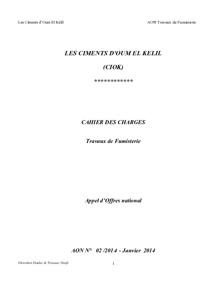 ************CASHIER DES CHARGESTravaux de FumisterieAppel offers national AON N 02 /2014 Janvier 2014