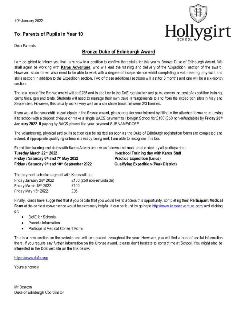 Get the free November 23 Dear Parent/ Carer DofE Launch I am ...
