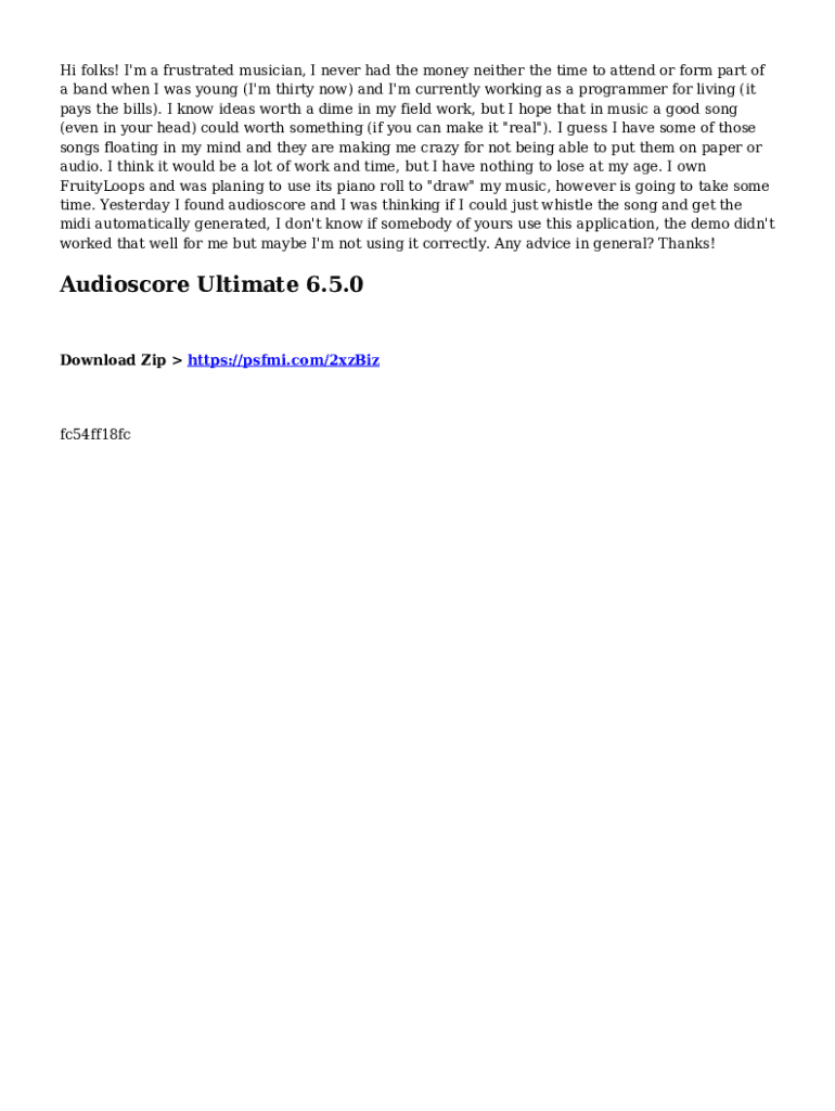 To fill out Audioscore Ultimate 650, gather all relevant financial information regarding audio income and expenses, complete the form according to the provided instructions, and ensure all calculations are accurate.