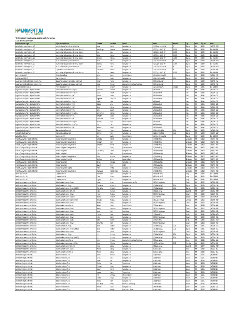 *For the hospital and large clinics, please contact for specific office locations August 2022 Participant Providers Organization Name Legal Capital Medical Center Physicians, LLC Capital Medical Center