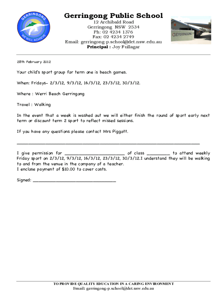 Gerringong Public School 12 Archibald Road Gerringong NSW 2534 Ph: 02 4234 1376 Fax: 02 4234 2749 Email: gerringongp.school@det.nsw.edu.au Principal : Joy Fullagar28th February 2012Your child\'s sport