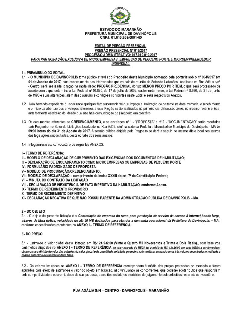 Obtenha o gratuito PARA PARTICIPAO EXCLUSIVA DE MICRO EMPRESAS, EMPRESAS DE PEQUENO PORTE E MICRO...